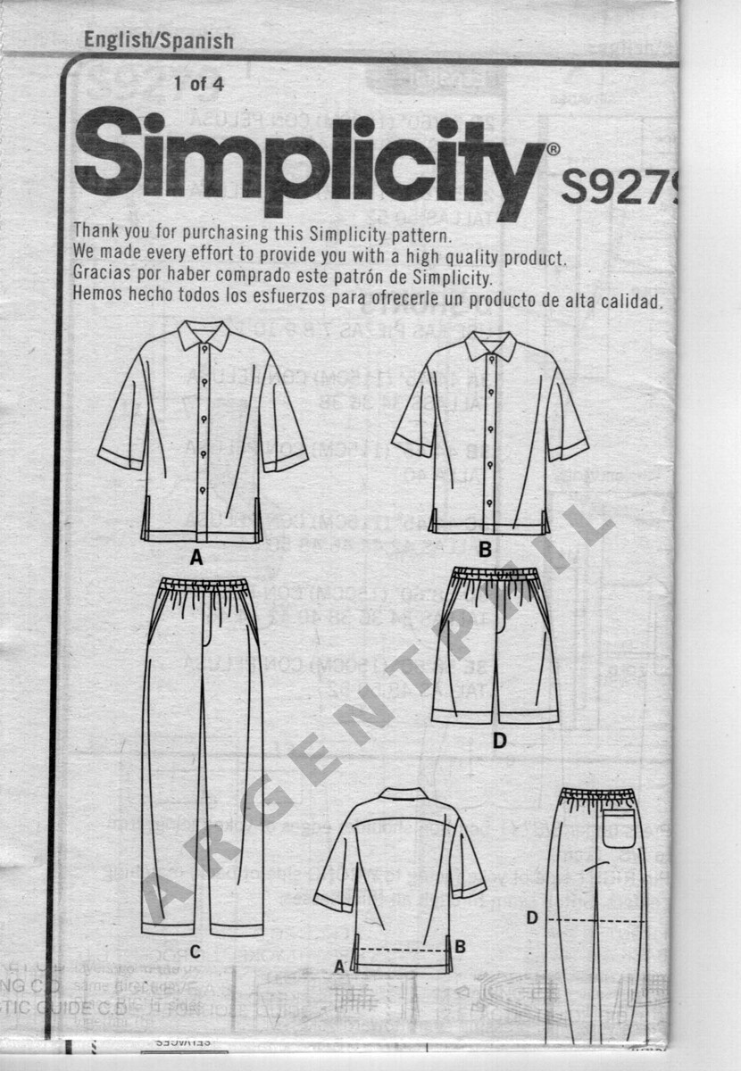 Simplicity 9279 Men S Short Sleeve Shirt Pants Shorts Sewing Pattern Free Ship Ebay